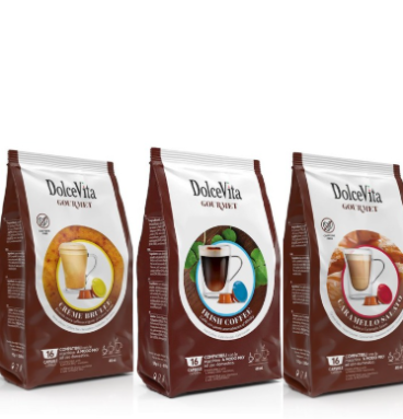 - Kapsulės suderinamos su Nespresso® ir Dolce Gusto® aparatais